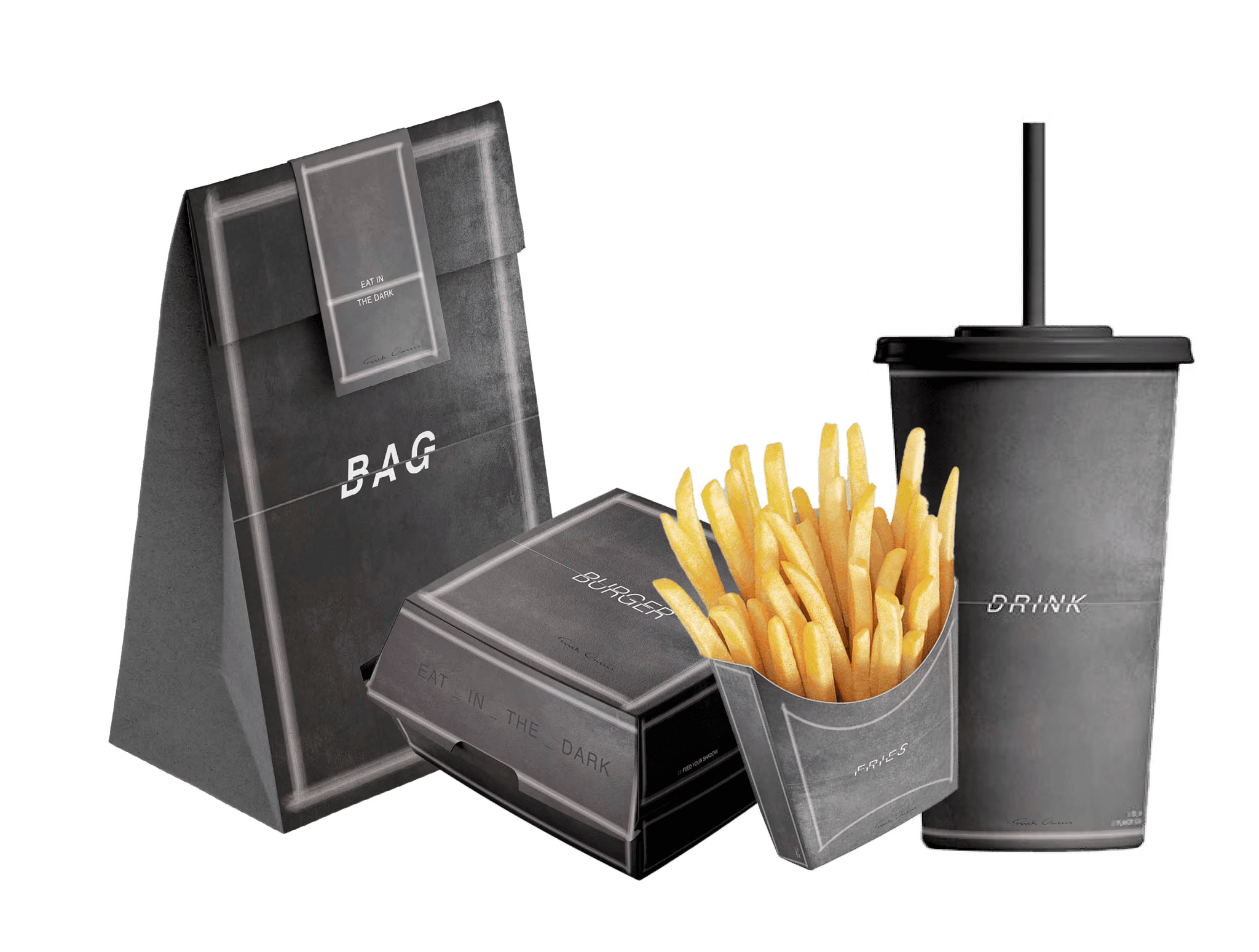 A conceptual design series inspired by the visual language of Rick Owens.The project reinterprets everyday objects through brutal minimalism, experimental branding,and sculptural graphic forms.